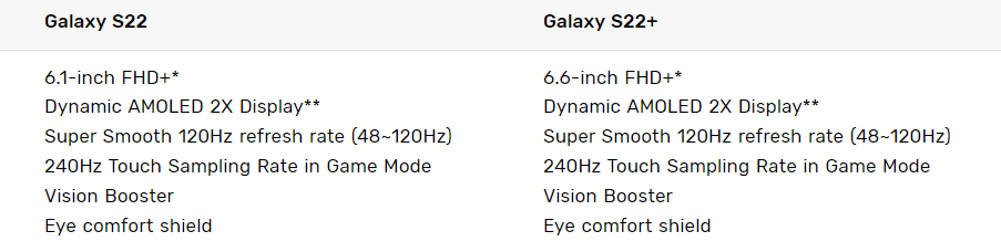 最初在规格表上列出的 10-120Hz 可变刷新率支持指的是这种专有技术。但是,Galaxy S22 和 Galaxy S22+ 的显示屏实际上并没有降至 10Hz,后来官方更新了规格,以符合更广泛认可的行业标准。(来源:IT之家)