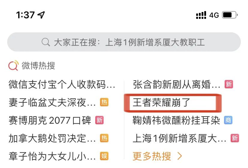 11 月 26 日上午,不少 QQ 区玩家反馈称,无法登录《王者荣耀》游戏,“王者荣耀崩了”话题最高冲至微博热搜第二。