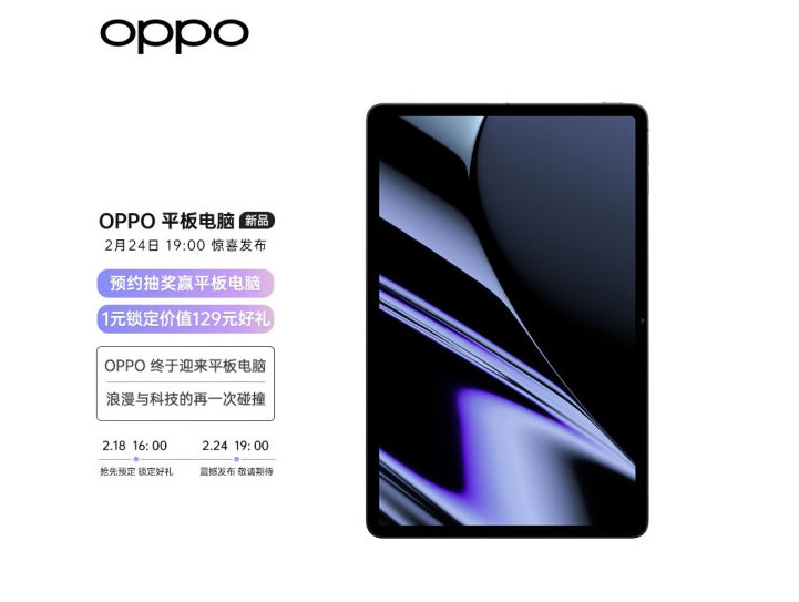 OPPO 将于 2 月 24 日晚 7 点召开全球发布会,推出手机、手表、耳机、平板等产品。