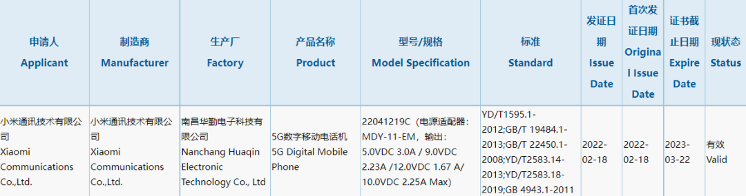 昨天,小米 Redmi 旗下一款新机通过 3C 认证,支持 22.5W 充电,型号为 22041219C,可能是一款低端机。