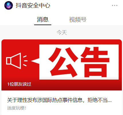 昨日晚间,微信安全中心发布了《关于理性发布涉国际热点事件信息的倡议》。