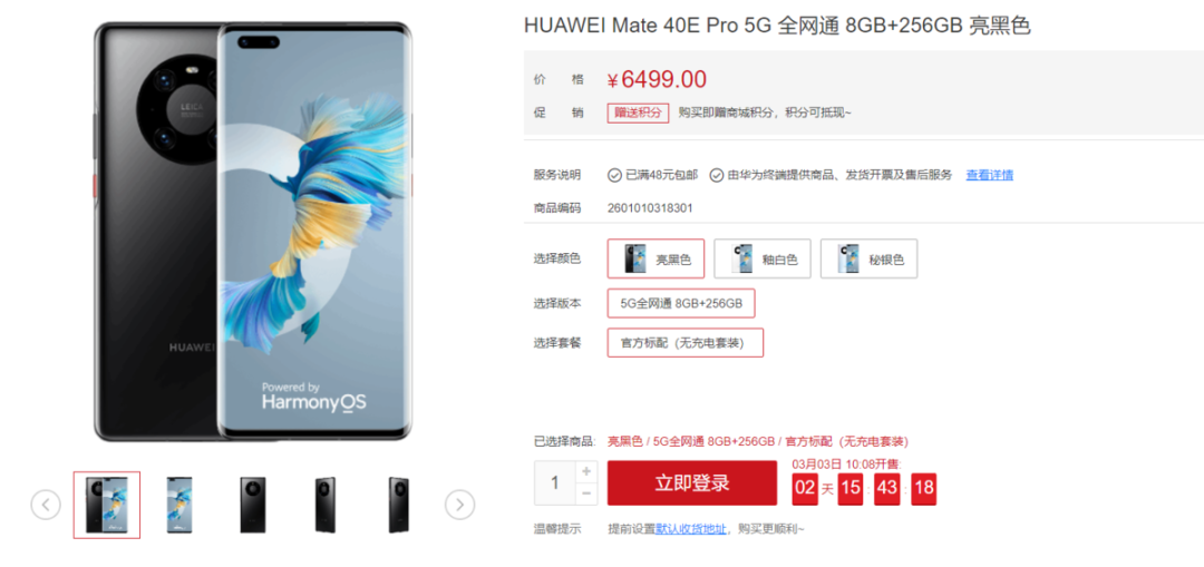 至于其他配置方面,华为 Mate 40E Pro 搭载 5000 万像素超感知后置三摄、6.76英寸超曲环幕屏、4400mAh 大电池和 66W 快充等。比较奇特的是,它目前的产品规格参数并没有提到 NFC 配置,目前并无法判断其是否去掉了这项功能。价格方面,这款新机目前仅提供了 8GB+256GB 可选择,售价为 6499 元。(来源:锋潮科技)