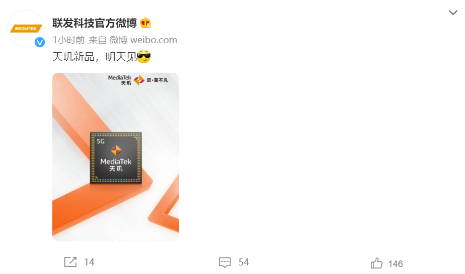 今日上午,联发科技通过官方微博宣布,天玑新品将于明日亮相,“天玑新品明天见”。