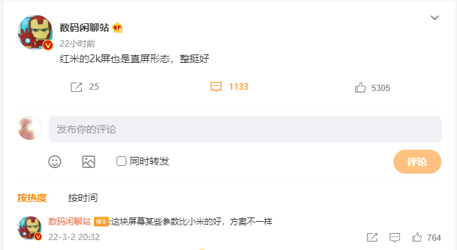 今天,微博科技博主@数码闲聊站 曝光了 Redmi K50 系列的屏幕素质:将采用 2K 分辨率的直屏设计。