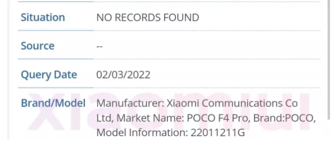 POCO F4 Pro现身数据库