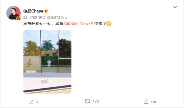 realme 副总裁徐起在微博中表示,realme 真我GT Neo3 即将发布。