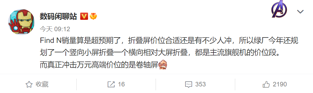 据 @数码闲聊站 今日爆料,去年底发布的 OPPO Find N 销量超预期,今年 OPPO 还规划了一个竖向小屏折叠一个横向相对大屏折叠,都是主流旗舰机的价位段。