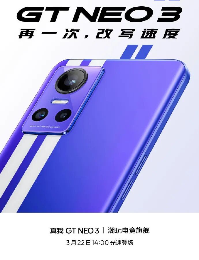 realme 今天下午宣布,将于 3 月 22 日 14 点举行新品发布会,届时会发布“潮玩电竞旗舰”新机真我 GT Neo3。