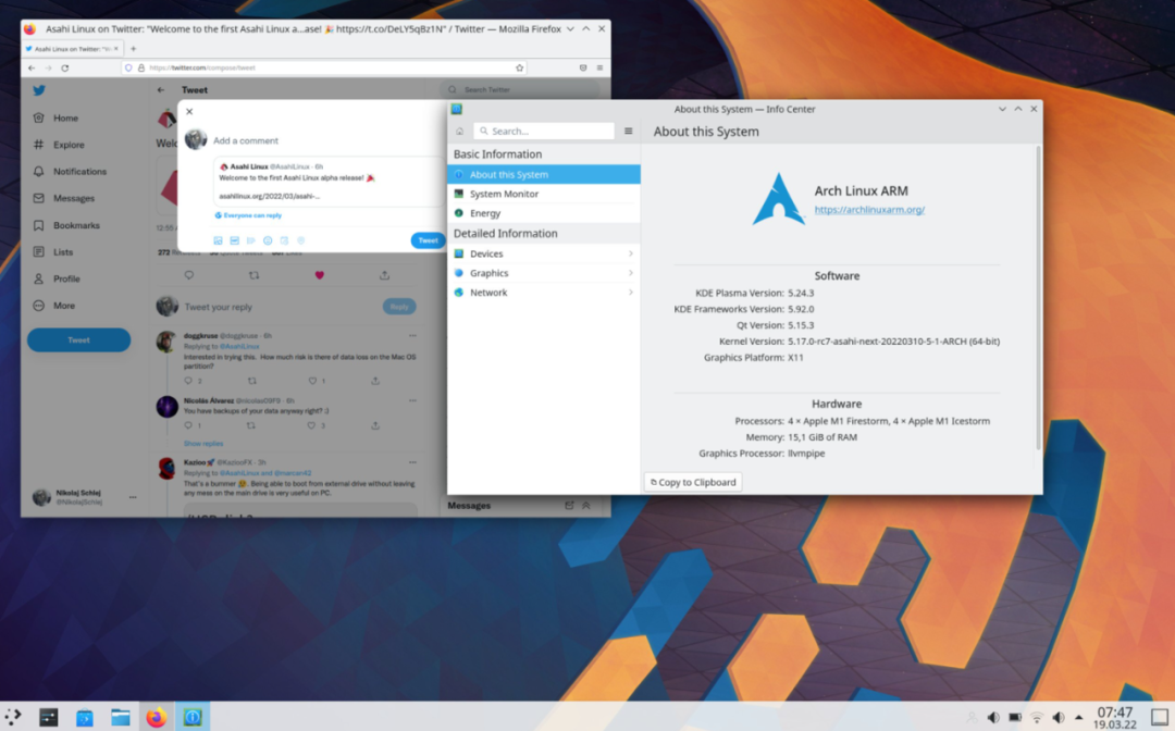 Asahi Linux 是研究 Linux for Apple Silicon macs 的组织群体,3 月 18 日,Asahi Linux 宣布成功在 M1 MacBook Air 笔记本电脑上运行,并开放了 Asahi Linux 的下载安装。