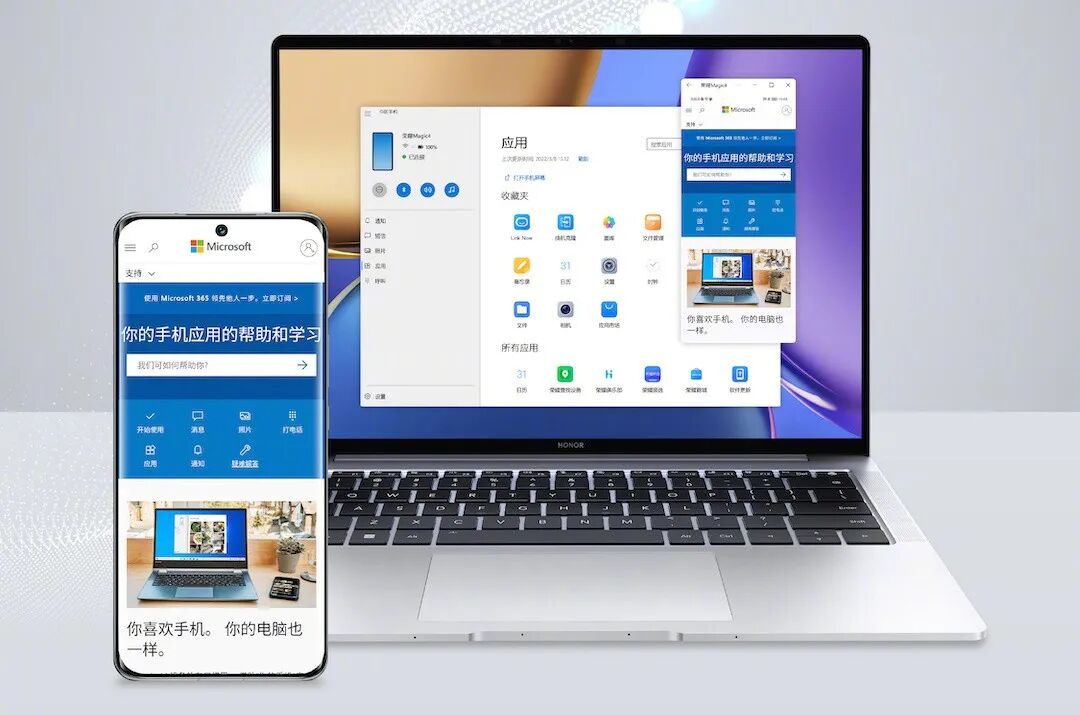 今日,荣耀官方宣布,与微软持续深化技术合作,基于用户场景,对“你的手机”的功能再次升级。当荣耀 Magic4 手机链接至 Windows 后,就可以在电脑上同时使用多个手机应用。