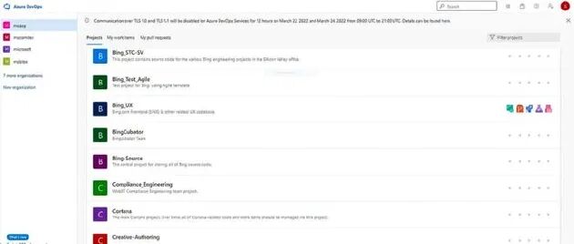 周日清晨,Lapsus$在其Telegram频道上发布了一张屏幕截图,显示他们已闯入了微软的Azure DevOps服务器,该服务器含有Bing、Cortana及其他众多内部项目的源代码。