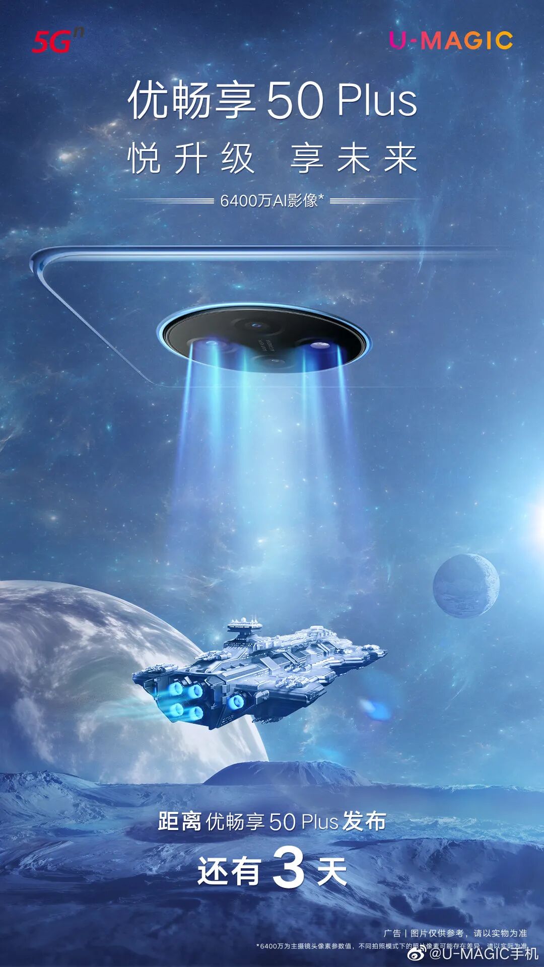 中国联通今日宣布,自主 5G 手机品牌 U-MAGIC 2022 年首款旗舰产品“优畅享 50 Plus”将于 3 月 28 日发布。