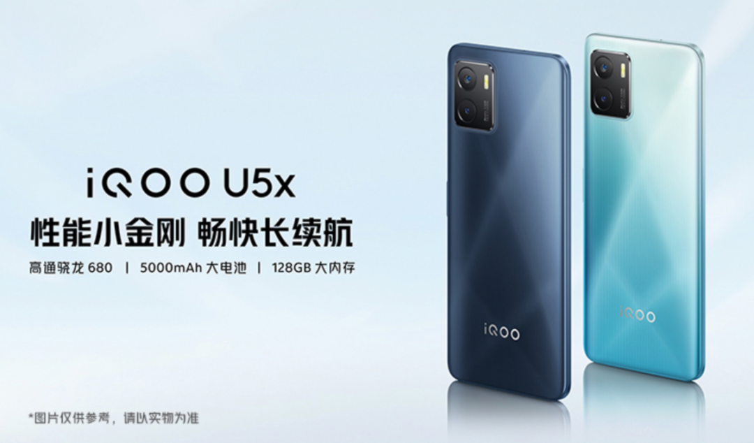 iQOO U5x 搭载了高通骁龙 680 处理器,128GB 大容量存储,最高 8GB RAM,内置 5000mAh 大容量电池,6.51 英寸的全贴合 LCD 屏幕,刷新率为 60Hz。
