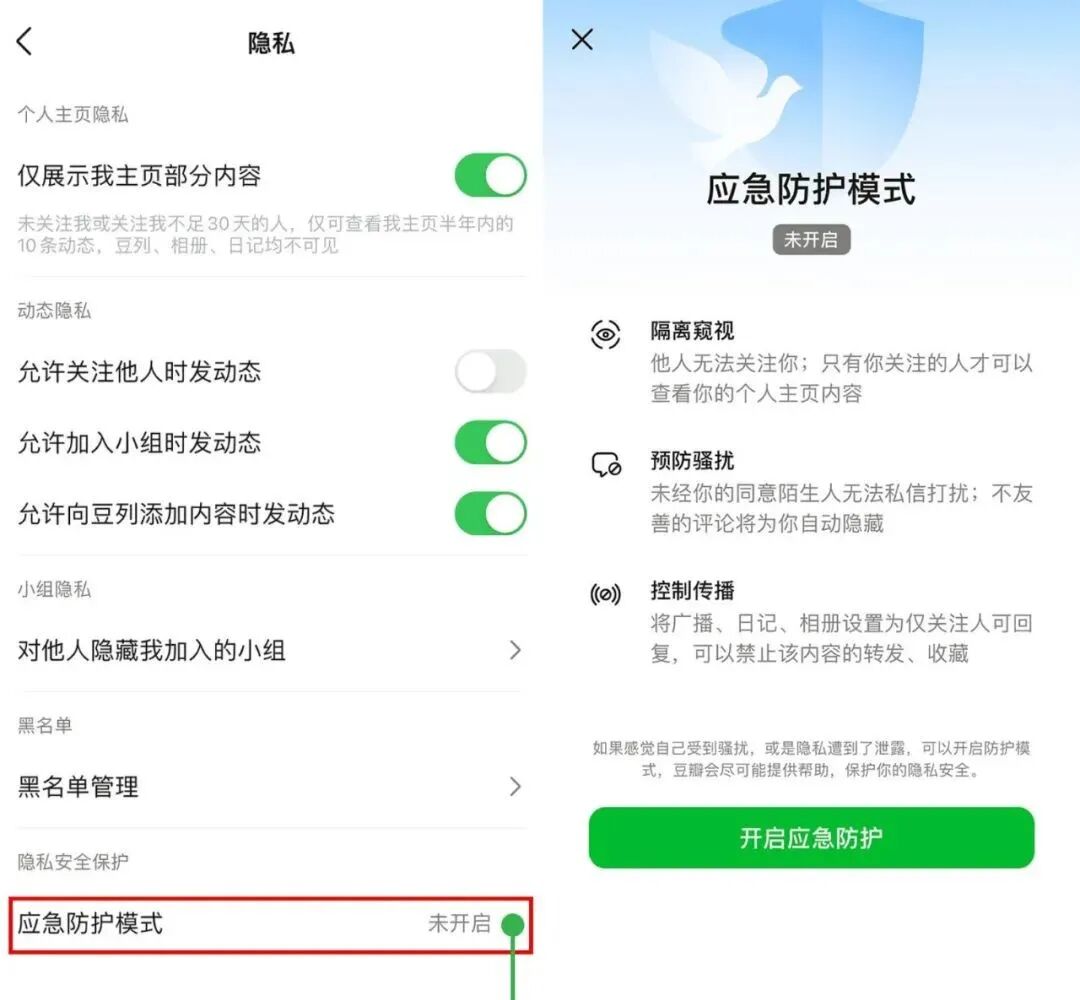 该新功能旨在通过平台提供的应急防护模式,帮助用户在受到陌生人的恶意骚扰、或在短时间内面对大量的言论攻击、或感到自身隐私安全遭遇严重威胁时,通过平台进行自我保护。设置方式:豆瓣 App:【设置→隐私设置→应急防护模式】开启。应急防护模式开启后,他人无法再关注开启防护的用户;未被该用户关注的陌生人无法查看其主页的内容,也无法直接与其进行私信交流,需得到该用户同意后,方可通过私信交流。(来源:IT之家)