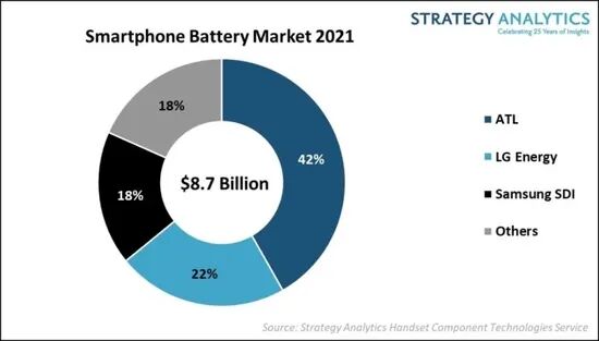 Strategy Analytics近期发布的研究报告指出,全球智能手机电池市场在2021年实现了87亿美元的总收益。2021年智能手机电池市场收益同比增长了超过10%。