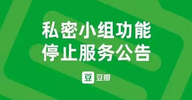 3月29日,豆瓣发布公告称,因业务调整,4月18日私密小组将全部停用,6月30日私密小组功能正式停止服务。