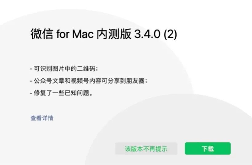 近日,微信 for Mac 迎来 3.4.0 (2) 内测版更新。