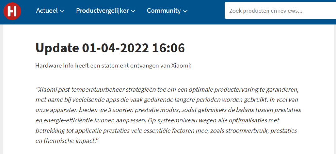 3 月 28 日,Geekbench 的联合创始人 John Poole 在推特上声称,小米似乎在根据应用的名称来限制性能。Poole 表示,将 Geekbench 伪装成《堡垒之夜》,会导致小米 11 的单核性能得分下降 30%,多核性能得分下降 15%。