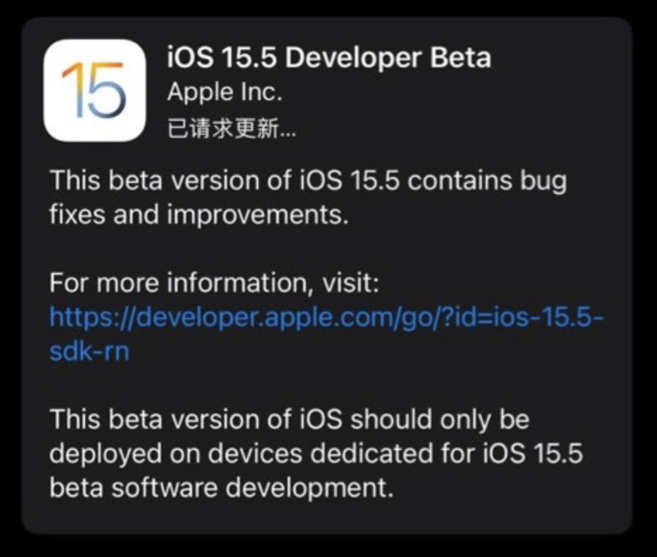 iOS 15.5/ iPadOS 15.5 开发者预览版 Beta 发布