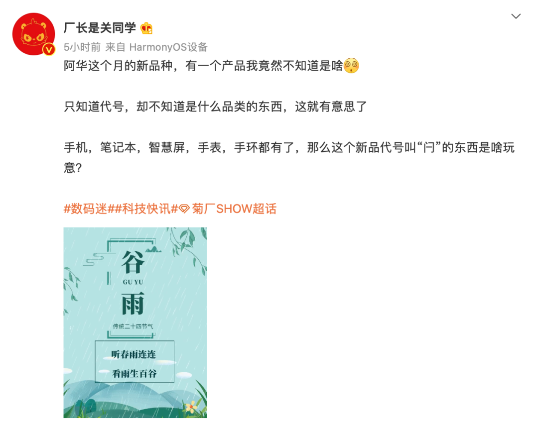 据爆料消息,华为本月将举行一次新品发布会,预计将发布新款手机、笔记本、智慧屏、手表和手环,另外还有一款神秘产品,代号为“闩”。