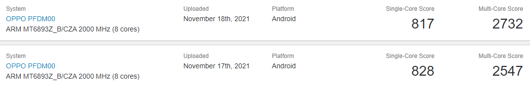 近日,OPPO PFDM00 出现在 GeenBench 5,有两次跑分,单核最高 828,多核最高 2732,搭载联发科天玑 1200 芯片,运行 Android 11 系统,内存为 8GB。数码博主 @差评帝 表示这款机型就是 OPPO Reno7 Pro,该机的后置摄像头可以亮光,预计会有一些特殊设计。