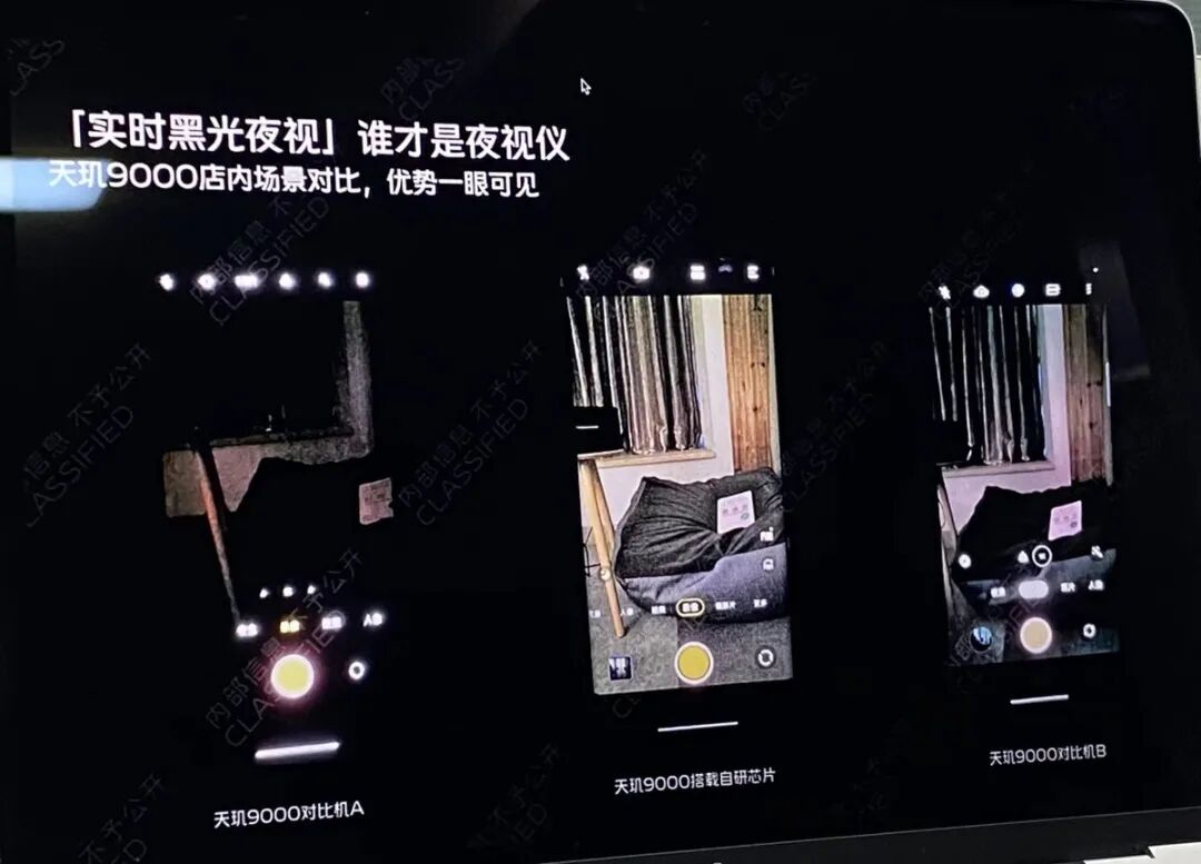 近日,有数码博主在社交平台发布了一张天玑9000机型影像对比图,图片里是三款手机在极限暗光场景下的拍摄预览界面对比,从图中可以很明显看出效果差距。