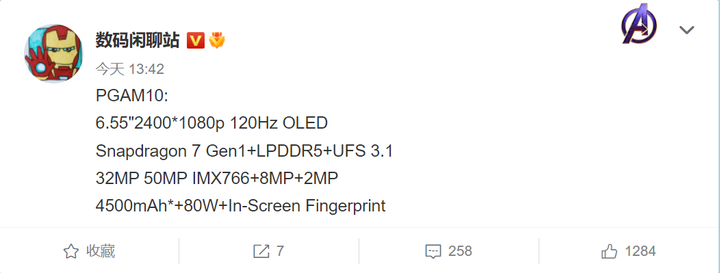 据悉,该机搭载一块 6.58 英寸的水滴屏,FHD 分辨率,侧面指纹解锁。整机厚度为 8mm,重量 186g,后置 4800 万像素主摄加上 200 万像素的战术镜头,并保留了 3.5mm 耳机接口。