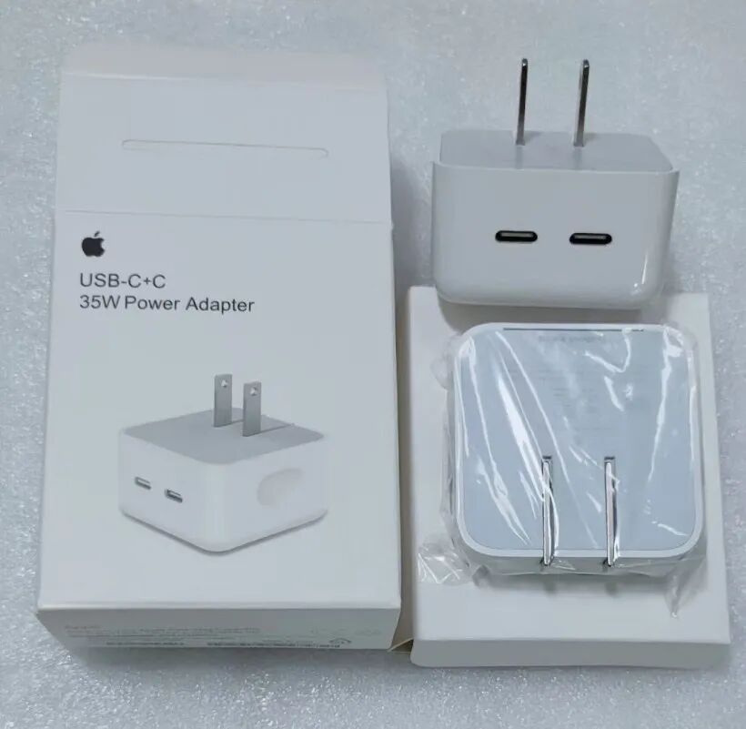 今日,数码博主 @WHYLAB 曝光了号称是苹果 35W 双 C 口氮化镓充电器实物图,有“单充电头”和“充电头、C to L 线套装”两种包装。