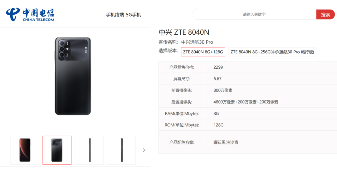 据悉,中兴远航 30 系列将于明日发布,主打快充长续航,现在中兴远航 30 Pro + 已经现身中国电信终端产品库,详细配置已经曝光。