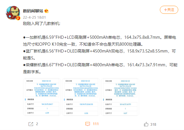 @数码闲聊站 表示,这款机型屏幕电池尺寸和 OPPO K10 完全一致,也是可能会搭载联发科天玑 8000 芯片。(来源:IT之家)