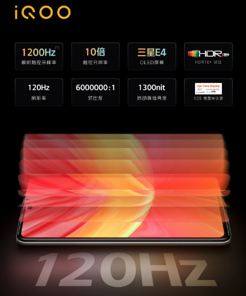 据悉,iQOO Neo6 SE 将搭载一块来自三星的 E4 发光材质,支持 120Hz 高刷新率,十倍触控分辨率,通过了 HDR10+ 认证,拥有 6000000:1 的对比度,局部峰值亮度更是能去到 1300nit,还通过了 SGS 低蓝光认证。