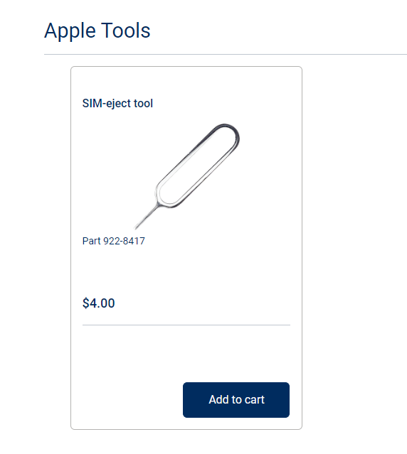近日,苹果正式上线了自主/自助维修服务,针对iPhone12、iPhone13、iPhoneSE3系列用户推出。有意思的是,在苹果自助维修商店里,苹果上架了iPhone SIM取卡针,售价4美元(约26.52元人民币)。