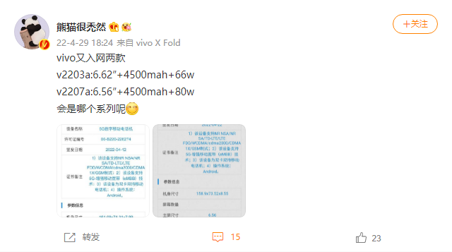 从之前的爆料信息来看,前者似乎是 vivo S15 Pro,后者未知。