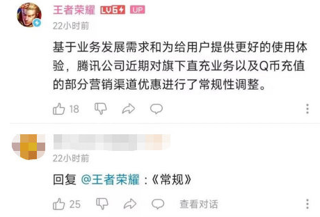 对此,王者荣耀官方B站账号回应称:基于业务发展需求和为给用户提供更好的使用体验,腾讯公司近期对旗下直充业务以及 Q 币充值的部分营销渠道优惠进行了常规性调整。(来源:IT之家)