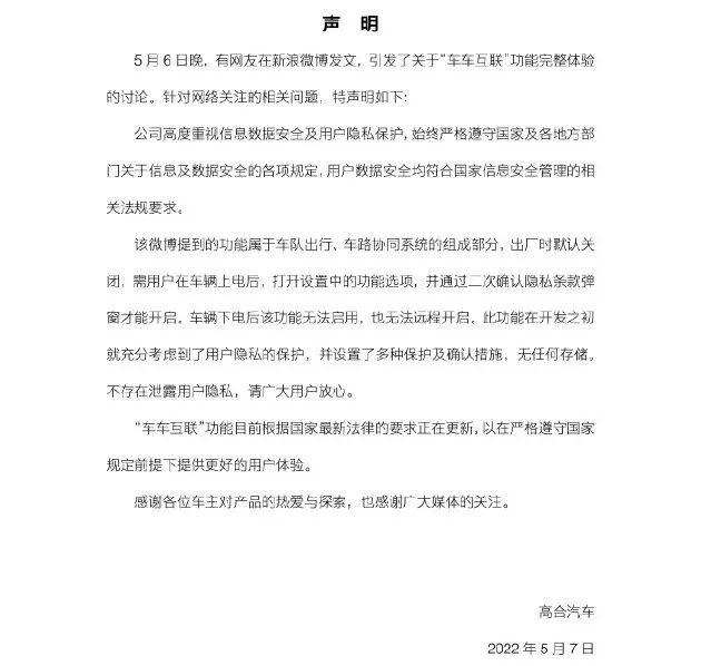 高合汽车回应行车记录仪泄露隐私