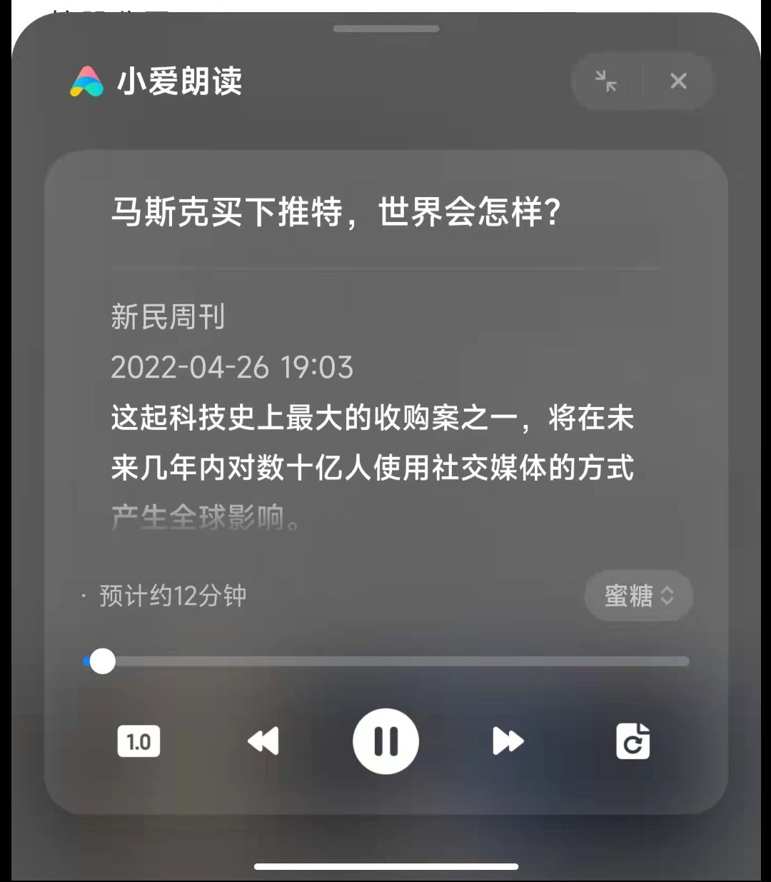 小米表示,在通勤、锻炼、做家务等看屏幕不方便时,“小爱朗读功能”可以帮助用户将屏幕上的文字信息转换为音频进行播放,从而更好的获取信息。