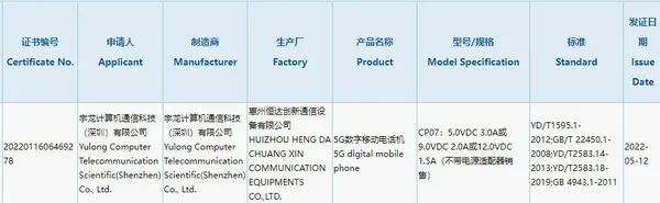 近日,有网友发现,酷派一款型号为 CP07 的新机通过了国家 3C 质量认证,支持 18W 快充,但很可惜不带电源适配器销售。