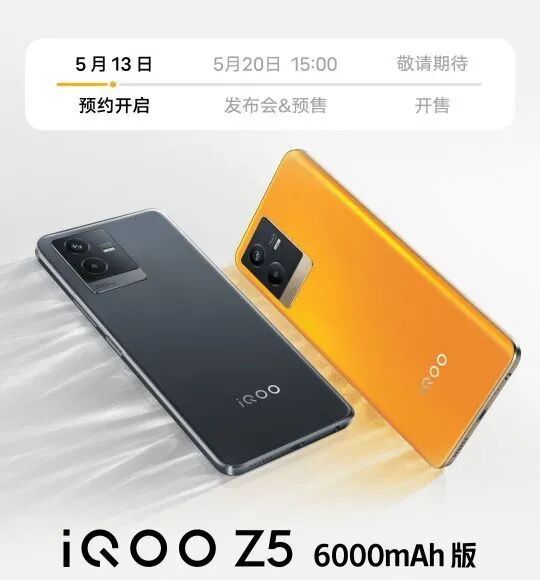 iQOO Z5 手机于去年 9 月发布,搭载了 5000mAh 电池,之前有消息称该机将推出一款搭载 6000mAh 电池的版本,这个版本新机的预约页面已经在网上曝光。预约页面给出了 iQOO Z5 6000mAh 电池版的外观设计。