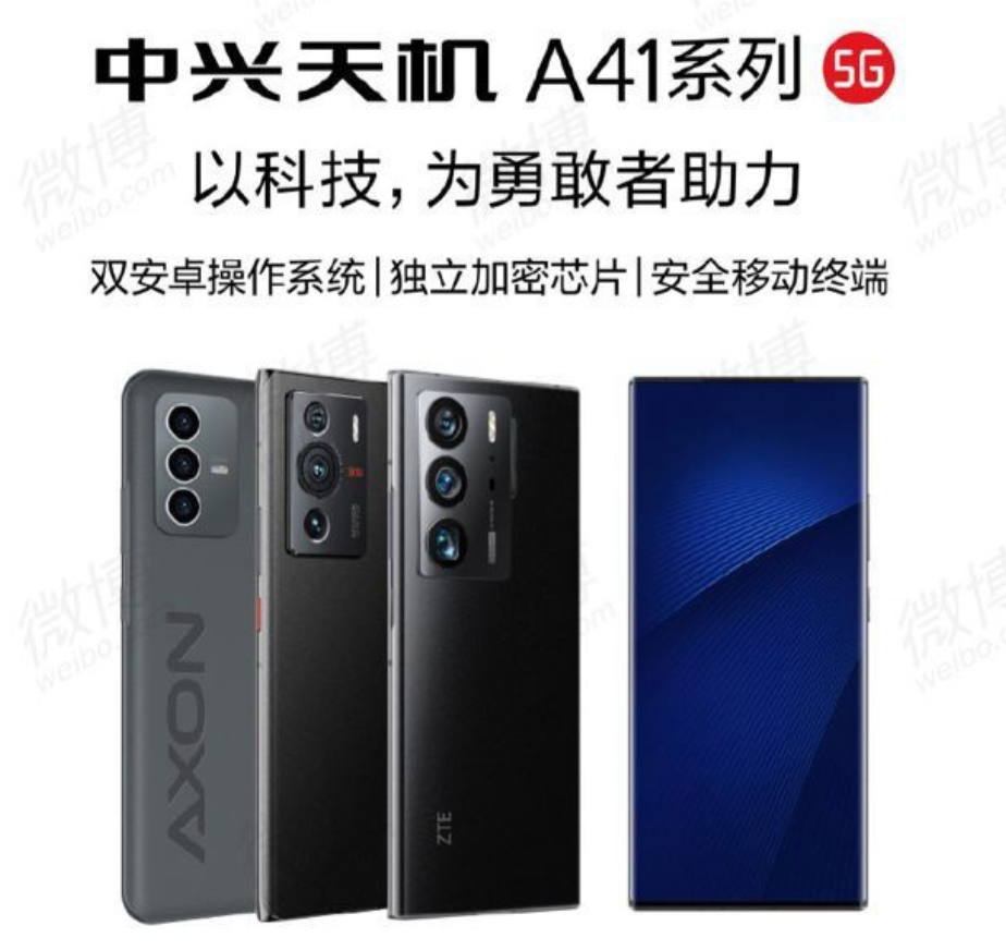 5 月 16 日,中兴官方宣布,中兴天机 A41 系列发布。全新的中兴天机 A41 Ultra、中兴天机 A41 Ultra 至尊版、中兴天机 A41,全系搭载双安卓系统 + 独立安全芯片,配备 5000mAh 大电池。
