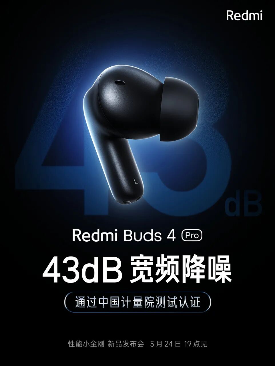 日前,Redmi 官宣了 Redmi Buds 4 Pro 耳机,将于 5 月 24 日与 Redmi Note 11T 手机一同发布。今天,Redmi 公布了这款耳机的一些参数。