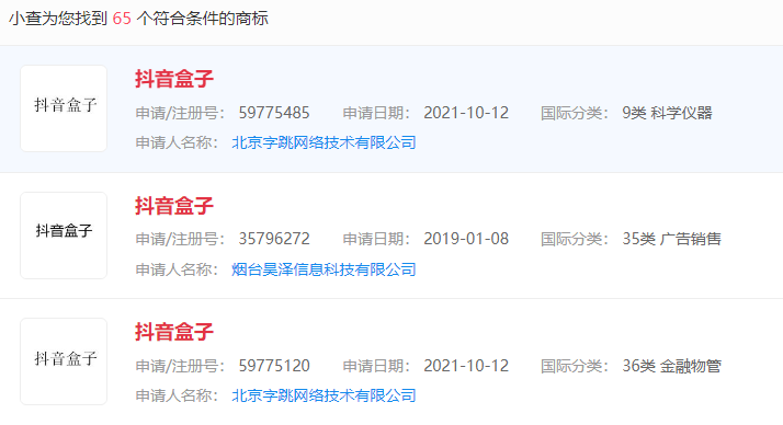 抖音关联公司此前已经申请注册了“抖音盒子”等一系列商标以及“抖音盒子软件”的软件著作权,还备案了抖音盒子官网,或打造“App + 网页”的双核商城模式。