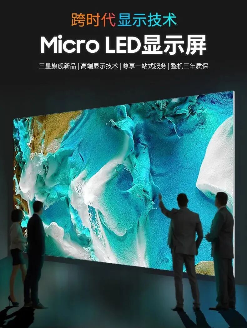 三星推出了最新款的 The Wall 电视,国内首发 110 英寸 Micro LED 电视屏幕,目前京东商城已开启预售,售价为 1049999 元。