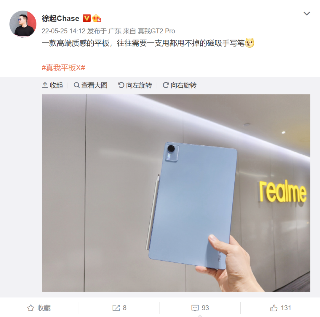 realme 真我平板 X 将于 5 月 26 日正式发布。今日下午,realme 真我平板 X 真机照亮相,配备磁吸手写笔。