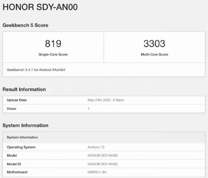 此前荣耀官方已经宣布将在 5 月 30 日发布荣耀 70 系列手机新品。现在荣耀 70 Pro 天玑 8000 芯片版工程机跑分曝光。