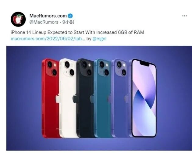 iPhone14可能全系标配6GB内存
