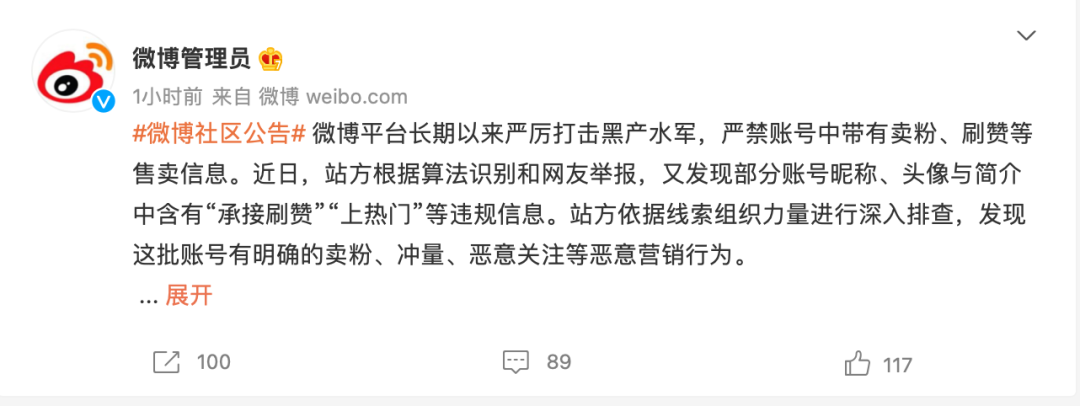 据微博管理员消息,近日,新浪微博发现部分账号存在“承接刷赞”“上热门”等违规信息,现已对 18670 个违规账号依规采取关停处置。