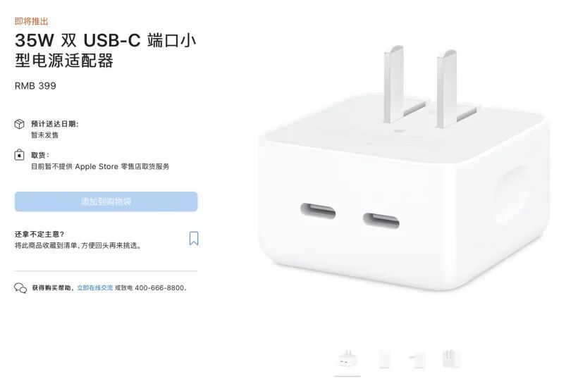 在今日的 WWDC 2022 演讲中,苹果正式推出了其全新的双 USB-C 35W 电源适配器,搭配 M2 MacBook Air 销售,零售款 399 元。除此之外, 苹果还上架了三种新颜色的 USB-C 转 MagSafe 3 连接线 (2 米)。