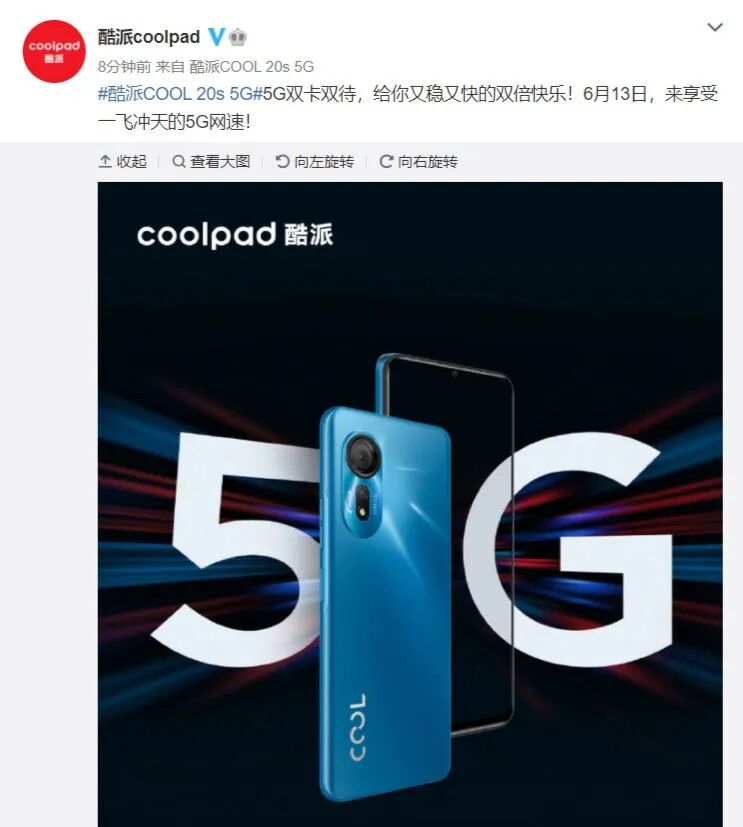 6 月 9 日,酷派继续预热 COOL 20s 手机,宣布将在 6 月 13 日发布。