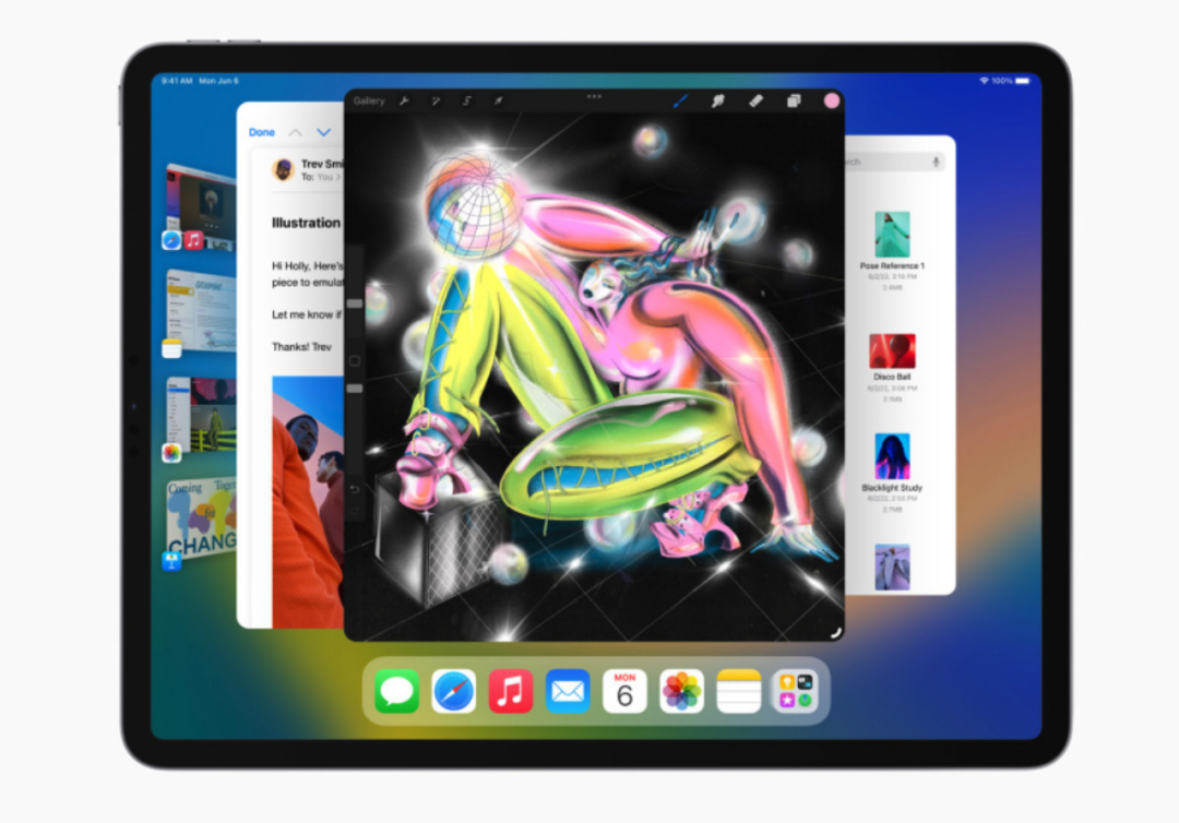 台前调度一种完全集成的功能,提供全新的窗口体验,响应迅速,允许用户在 iPad 和高达 6K 分辨率的外部显示器上同时运行 8 个应用程序。