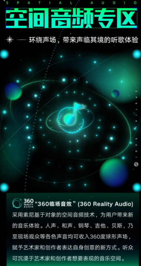 据了解,“360 临场音效”(360 Reality Audio) 采用索尼基于对象的空间音频技术,为用户带来新的音乐体验。人声、和声、钢琴、吉他、贝斯,乃至现场观众等各色声音均可收入 360 度球形声场。(来源:IT之家)